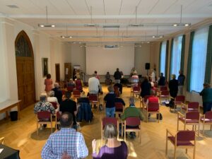 Diese Analysen könnten frustrierend sein, wenn man nicht, wie es die Teilnehmer dann taten, in eine intensive Gebetszeit einstiegen, in der Fürbitten für unser Land und unserer Kirchen an Gott gerichtet wurden. Wegen der Corona-Abstands – und Hygieneregeln verzichteten wir im Plenum auf gemeinsamen Gesang, eine kleine Band spielte und sang von vorne. Nichts destotrotz wurden die Gebets -und Lobpreiszeiten geistlich sehr dicht. Auch eine Lernerfahrung: An der Lautstärke des Gesangs hängt nicht die Intensität der Anbetung.